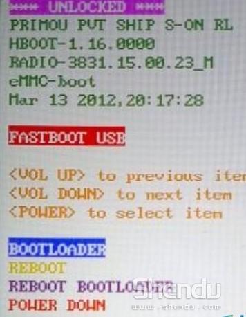 3、) 手机进入HBOOT模式之后按一下“电源键”手机进入FASTBOOT,连接USB