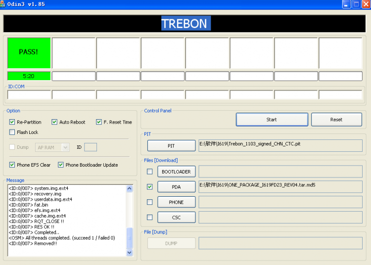恭喜你,三星i619刷机救砖成功,现在请拔线开机吧!按“*2767*3855#”进行主清除!(注意此步骤不要忘记哦)