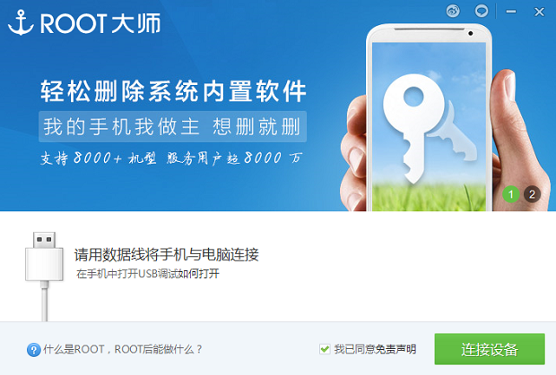 打开ROOT大师,等待usb连接成功,如下图所示: