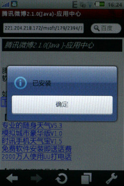 得益于步步高互联音乐手机i710的WiFi功能,在小编测试下载322K的腾讯微博仅用了区区几秒钟时间,非常快捷,而且下载好之后步步高互联音乐手机i710会自动识别并安装,对于不太懂Java的用户,可以说是非常的方便,安装之后,步步高互联音乐手机i710会默认将图标改成默认风格,使得图标风格不至于太凌乱而影响美观,很贴心。