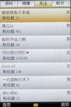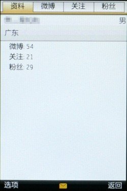 图:步步高互联音乐手机i710 内置了功能非常全面的新浪微博 资料、关注和粉丝