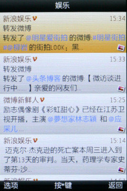图:步步高互联音乐手机i710 内置了功能非常全面的新浪微博 娱乐资讯