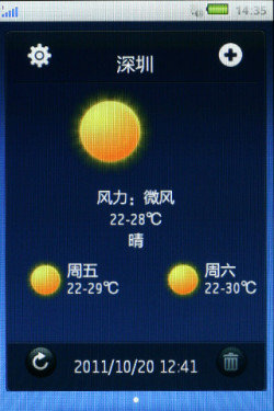图:步步高互联音乐手机i710 可以通过互联网自动刷新天气,如果流量够用的话,可以设定成每分钟刷新