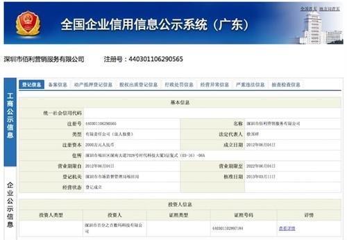 在全国企业信用信息公示系统网站上搜索深圳市佰利营销服务,发现,这家公司是深圳市百分之百数码科技的全资子公司。
