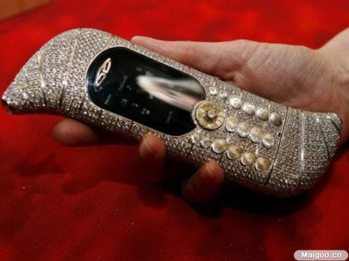这款手机上镶嵌了50颗,其中有8颗是十分罕见的蓝色彩钻,而它的按钮则由18K的玫瑰金制成。或许是为了增加一点内涵,这款手机还搭载了手机采用Windows CE 操作系统,并且还提供了通信加密功能,可以保证富豪们的通话安全。如此内外兼修的Diamond Crypto达到了130万美元(约795万元)的天价虽让普通人惊叹,但却绝对能够展现出拥有者的财富和权力。