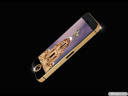 Stuart Hughes在这部史上最贵的iPhone 5上使用了大量的黄金和,而且完全手工制造,最终花费了他9个星期的时间才制作完成。从照片中可以看出,这部iPhone 5的外壳金属部分已被24K黄金所替代,而Home键上则镶嵌了一颗足足有26克拉的黑钻。le million手机除此以外,这部iPhone 5上总共使用了多达600多颗大大小小的,仅背部的苹果Logo上就镶嵌了53颗。该设计师透漏,这部iPhone 5的主人是一位来自中国的商人,当时这位商人亲自带来一颗26克拉的黑钻来利物浦与他合作,希望他能为其打造一款全世界最贵的手机。