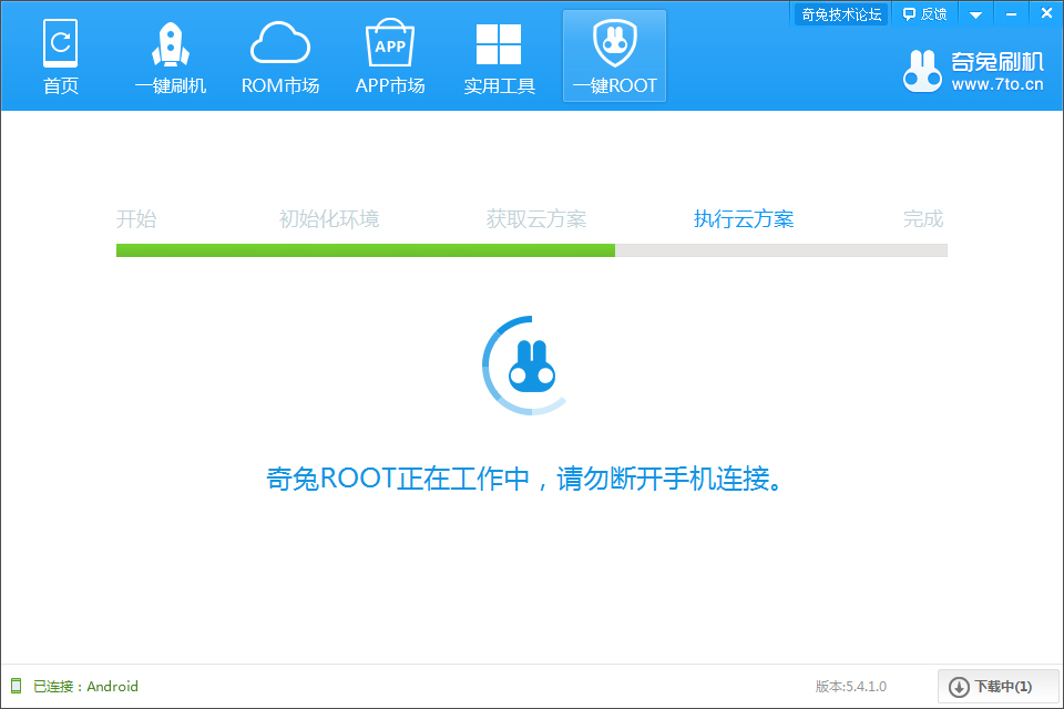3.耐心等待3-5分钟,在这期间务必保证手机的正常连接,剩下的事情奇兔一键ROOT会帮你完成!