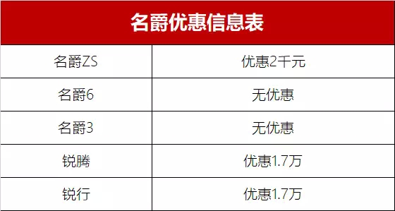 全新名爵6热度很高,看车的消费者也很多,不过这款车定价有些过高,未来销量能否有所突破还是个未知数。名爵ZS依然是小型SUV中竞争力不俗的一款车型,但价格上一直比较坚挺,优惠幅度不大,名爵锐腾、锐行已经不是名爵的主打车型,终端降价比较大。