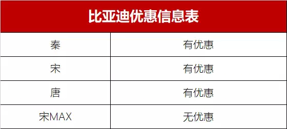 比亚迪宋MAX 11月份以10265辆的成绩跃居MPV销量排行榜第四,成为名副其实的黑马,高颜值、丰富的科技和安全配置以及7座大空间使得这款车直接戳中了家庭用车的需求,新车上市不久目前还没有优惠,由于销售火爆,比亚迪的生产线都在为宋MAX让产能。而像秦、唐、宋等王朝系列车型也都有一定优惠,但天涯君调查中没有获得具体优惠力度,有购车需要的朋友可以咨询当地经销商。