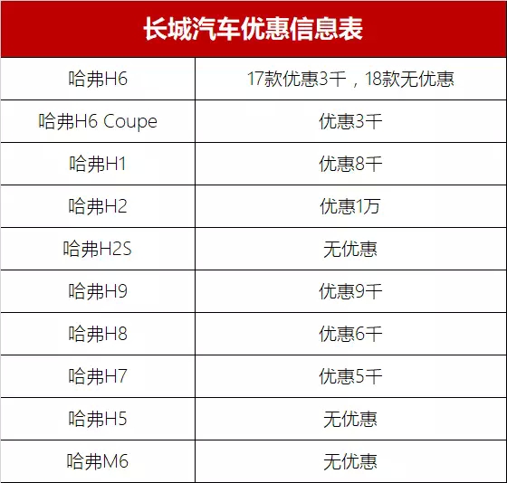 搭载长城自主研发1.5T发动机的哈弗H6已经上市,目前还没有任何优惠,但旗下的小型SUV哈弗H1、哈弗H2相比之前优惠力度大了很多。