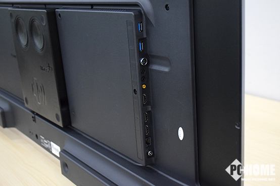 所有端口集中在侧面,数量和品种丰富。HDMI、USB 3.0、耳机口、有线电视、网线口一应俱全,其中USB3.0和HDMI接口配置了多个连接口,便于外接移动硬盘、鼠标键盘、播放器、游戏机等设备的连接。
