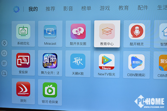 在应用方面,酷开电视也为孩子们提供了教育中心板块,这里推送的也都是适合小孩子的APP和游戏,作为家长而言无需担心家中的小孩子接触一些不合适的内容,资源除了适龄儿童的儿歌、故事、小游戏、幼教等APP外没有任何不适合的资源,除了纷纷童年的快乐,不掺杂任何杂质。