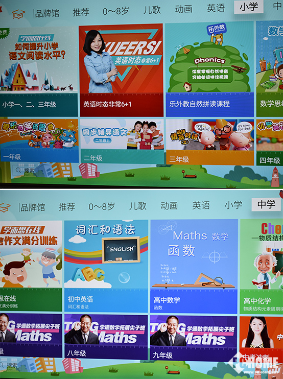 酷开还为0~8岁,以及小学和初中的孩子们准备了学习辅助APP、让孩子们在学校里有老师讲解的同时,在家里也同样可以得到的授课。