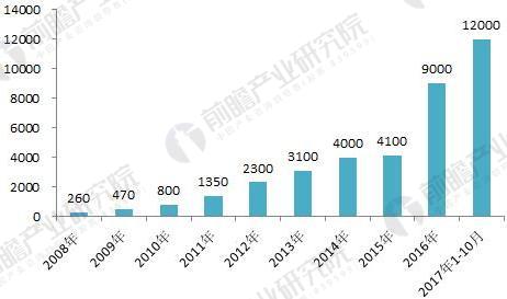图表1:2008-2017年中国IPTV用户数量变化(不含中国移动)(单位:%)