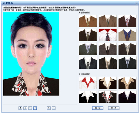 进入“服装替换”界面之后,只需要人物脖子处画一条横线,就可以自动完成服装的替换了。需要注意的是,横线画在人物脸颊下方部位,这样可以使替换的服装更加合身。当然,也可以手动进行多次调整,找到满意的穿戴感。而证照之星中有着很多款式的正装模板,绝对有你满意的服装款式。