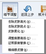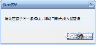 3、接下来就是替换服装了,在“细节处理”处轻轻一点,在下拉框中选择“处理服装”,进入对话框后,选择一款服装,软件就会提示在脖子处画一条横线即可自动完成服装的替换,当然也要进行适当的调整。