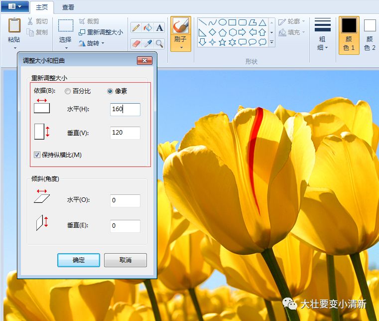 06. 在弹出的界面上检查“保持长宽比”,然后在水平方向上输入缩小量. 在水平输入之后,垂直将自动跟随更改.