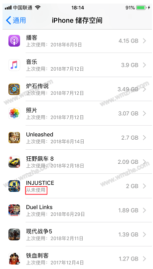 首先,我们需要确定哪些应用程序占用了大量存储空间. 您可以在[设置]-[常规]-[iPhone存储空间]中检查当前设备的内存使用情况. 长时间不使用的应用程序可以暂时卸载并在需要时重新下载.