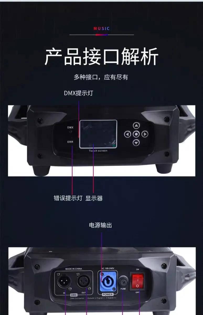 [开关电源]: 具有开关主板,冷却风扇,打火机和电机的功能. 每种不同类型的光束灯的电压都会略有不同. 当电源电压不足或发生短路时,计算机光束灯将移动. 组件将受到影响,从而导致打火机无法点亮.