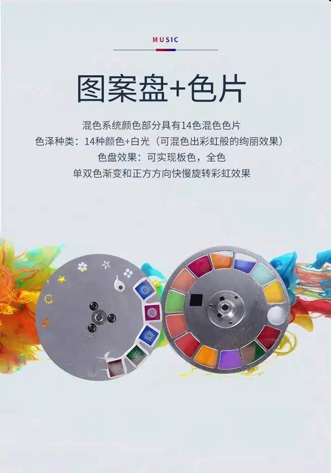 [图案和色轮]普通的光束图案灯具有17个插入式图案灯+白光,色轮具有13/14色板+白光,具有各种颜色和变化,酒吧,KTV,婚礼舞台,等等. 它可以轻松应对各种场合,以确保演出的正常表现.