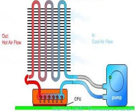 顾名思义,水冷散热器利用散热液的高热容量带走CPU释放的热量. 水冷式水泵可以加快水的循环,而传统的风冷式热管利用流体循环来蒸发以传导热量. 到其他地方.