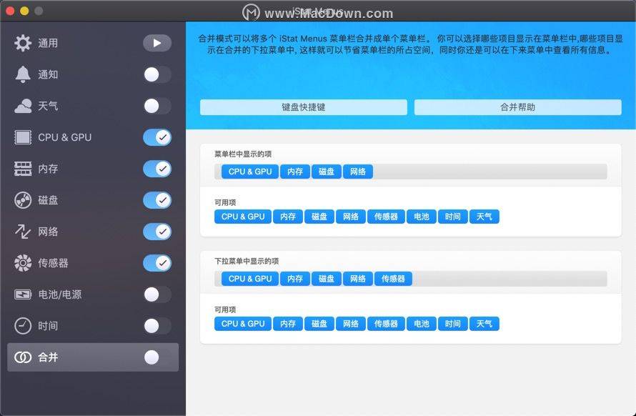 -紧凑的通知中心小部件,涵盖了一些流行的iStat菜单功能.