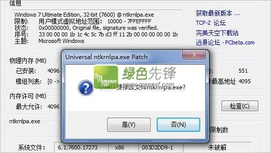 win7 4G内存补丁(ReadyFor4G)下载,破解了win7系统的4G内存限制.