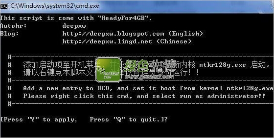 ReadyFor4GB是一个中国人编写的防呆工具,用于破解Win7的4GB内存限制,允许32位系统使用4G或更大的内存.