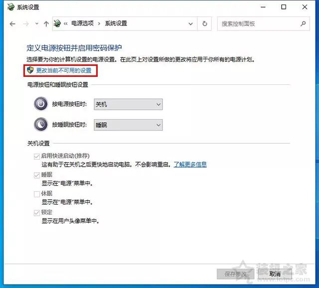 如果您无法修改关机设置,请首先单击“更改当前不可用的设置”,如下图所示.