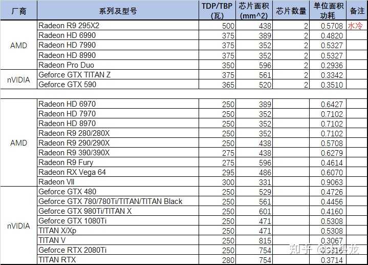 可以看出500W R9 295X2是水冷的。尽管据说最终是风冷的,但在导热过程中仍然存在许多差异。我将不在这里讨论它(有几种水冷图形卡具有相对较高的功耗。不再列出)。那些功率超过350W的都是双芯片图形卡。单芯片卡,单卡功耗不超过300W。在上表中,我添加了芯片面积参数,您可以看到最小面积是Radeon VII的331平方毫米。根据高中物理,我们都知道紧密接触的两种材料每单位时间的传热与接触面积成正比,与温度差成正比。