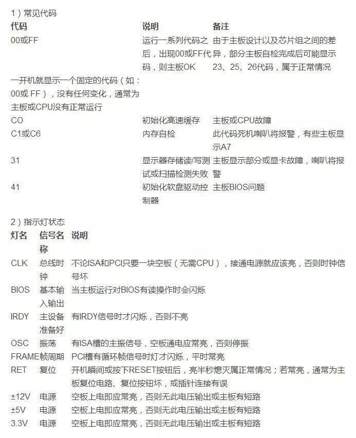 最后,我将附上主板诊断卡的含义以及相关的计算机故障维护示例。