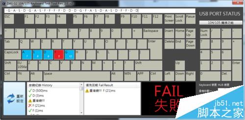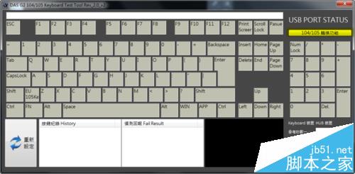 4、如果某个键在正常敲击时出现红色,右下方的侦测栏会有相同的显示。