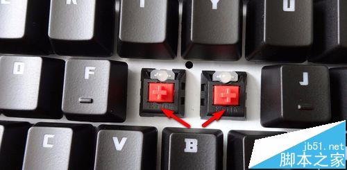 6、之后,找一个吸管(中等),在按动轴心的同时,用力吹一吹(轴体下侧弹片位置),用气流带出轴体内部分杂质。