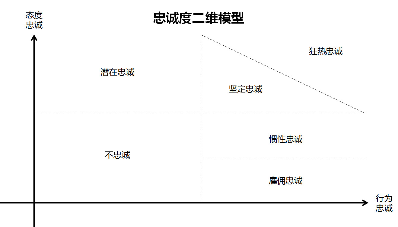 根据用户的行为忠诚和态度忠诚的深度,我们建立以下二维模型。