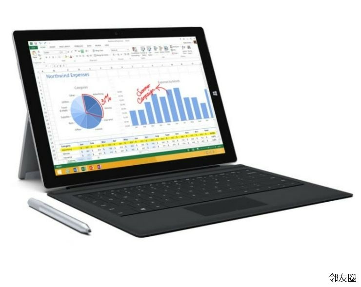 如今,市场上销售的新的surface pro 二合一12.3英寸平板电脑,8G内存,128G存储,intel Core i5,A4纸大小微软surface 3怎么样,重量768g。可以是笔记本模式或平板娱乐模式,自如切换。散热系统为无风扇型,安静,散热性能还好。JD价格从6000~10000多元。新的Surface pro配置提高、性能提升,屏幕加大,相信它的体验性应该会更好。