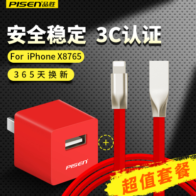 品胜7苹果充电头iphone6/7plus/8X单头5s通用快充xs正品pad4 6p相机专用sp数据线6s安卓充电器USB插头一套装5