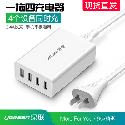 绿联多口手机平板充电器2.4A快速充电插座苹果安卓通用充电分线器一拖四3口4口usb旅行充电器插头带线1.5米