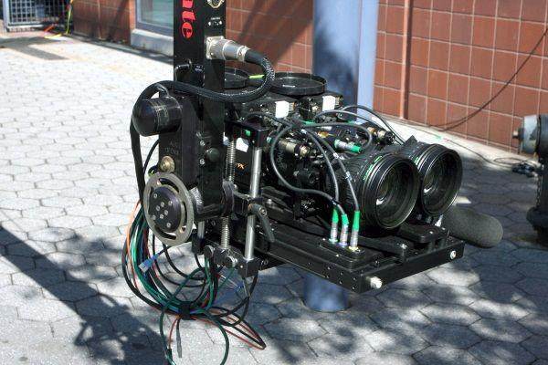 某些ENG摄像机现在可以配备模块,以将其直接转换为伪通道,并且可以通过访问CCU将其集成到系统中. 图为索尼XDCAM肩背机. 您可以看到麦克风和存储卡插槽(未插入卡),但背面已添加一个模块(占用电池位置). 该模块已插入TRIAX电缆,并具有内部连接. 成像器:
