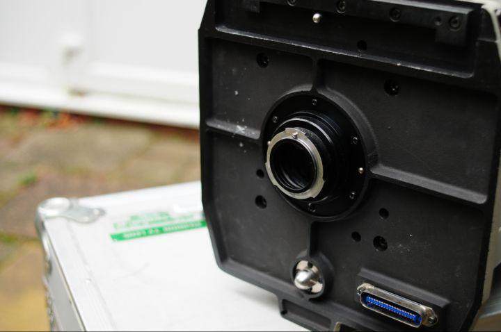 请注意,黑暗和明亮的部分,这是系统相机的两个不同部分. 打开机架的后盖. 内部是一台小型肩扛式机器. 图为索尼HDC-1500