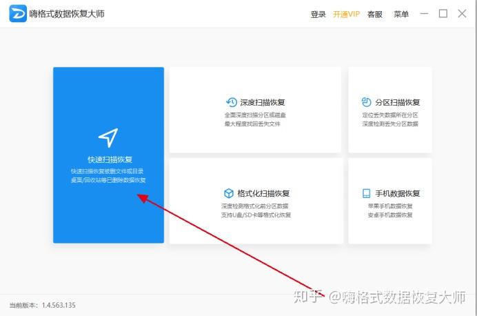 2. 打开下载并安装的数据恢复软件,然后在软件主界面中选择“快速扫描恢复”模式以扫描丢失的数据磁盘. 意外删除的文件通常可以使用快速扫描恢复模式进行扫描和修复. 如果快速扫描恢复找不到丢失的文件,则需要重新选择“深度扫描恢复模式”以修复数据文件.