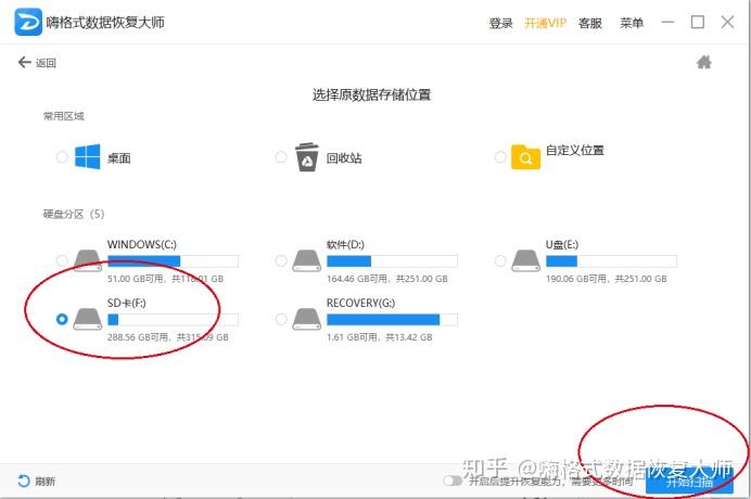 3. 选择“原始数据文件的存储位置”. 对于文件的存储位置sd卡误删修复软件,您可以直接选择与意外删除数据相对应的磁盘,即我们删除的数据的“ SD卡”,然后单击下面的“开始扫描”以自动扫描丢失的数据磁盘.