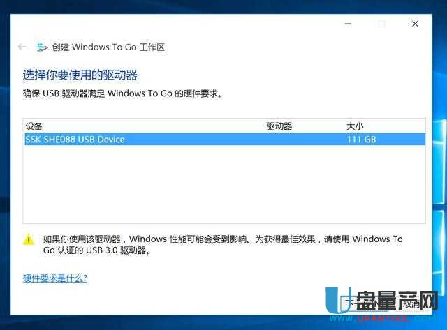 6,然后选择您的移动硬盘,例如ssk移动硬盘,因为它不是经过认证的移动硬盘,因此它会提示性能可能受到影响,请忽略它.