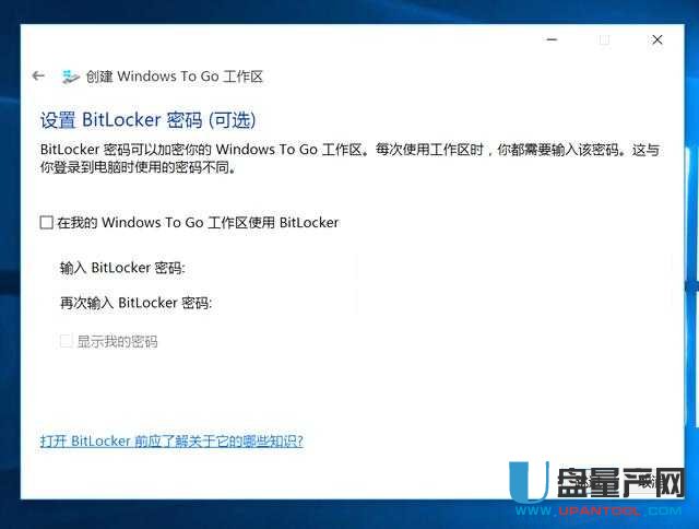 8,然后将询问您是否选择一个Bitlocker密码. 建议不要设置它.