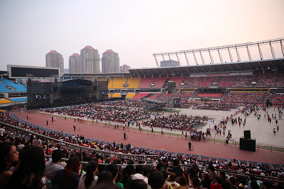 7月份的林肯公园是全画幅5D3 +大白,相同的看台,北京工人体育场真的很大,看台距离体育场很远