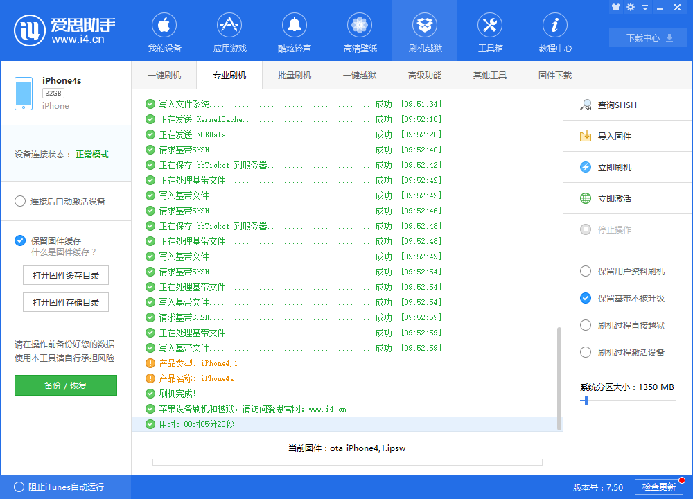 4. 接下来,Aisi Assistant将自动开始闪烁,保持数据电缆连接稳定,并等待闪烁完成;