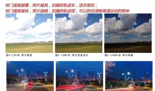 快门速度越慢,照片越亮,拍摄轨迹越长,适合夜间拍摄;快门速度越快,照片越暗,拍摄轨迹越短,则可以捕获清晰,高速的移动物体