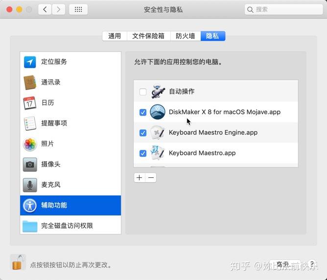 在创建可引导U盘之前,需要将DiskMaker X添加到辅助功能中.