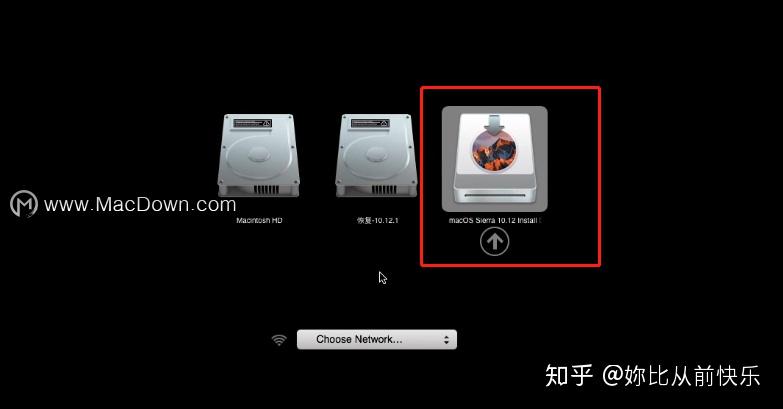 将已安装的系统U盘插入计算机,按电源按钮,当听到“轰”声时,按Option键,按住不放,直到看到磁盘选择屏幕,松开键盘,按键盘. 箭头键选择安装磁盘. 按Enter后,它将重新启动