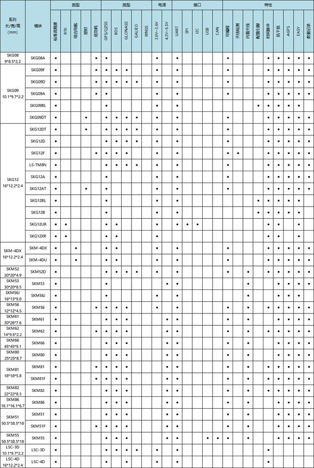 SKYLAB GNSS模块选择表