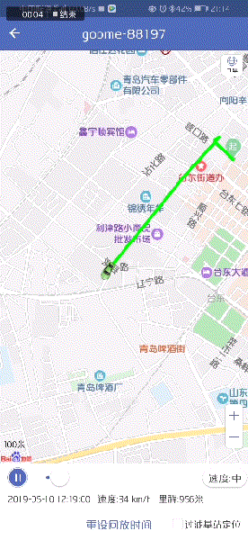 历史轨迹查询的功能更加有趣. 它可以指定某天或某段时间的运动轨迹以及当时的行驶速度. 它也可以显示这段时间的行进距离,去向和行驶距离,如果中间有一个停车位,还可以显示停车位的长度,整个行驶情况一目了然